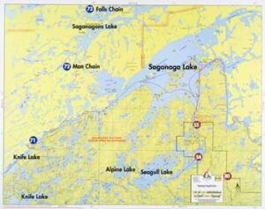 The “F” series maps are our most recent set of maps taken from U.S. Forestry and Canadian topographical base. Scale is 1-1/2″ to the mile, more than twice the scale of our 1952 (100-series) maps. This map base provides the ultimate in accuracy and detail including land contours and lake bottom contours where that information is available on the Minnesota side of the border. U.S. Forestry map base originates from U.S. Geological Survey source material. This “F” series of maps will be of interest to the hiker, backpacker, and hunter as well as those traveling the waters of the canoe country. The maps are printed in four colors on a polypropylene base paper affording maximum readability. They are completely waterproof and will hold up with the roughest handling. Campsite, portage, trail, and other relevant information on the Minnesota side is provided and reviewed annually by the U.S. Forest Service for accuracy. Bold lake names shown not actually printed on map.